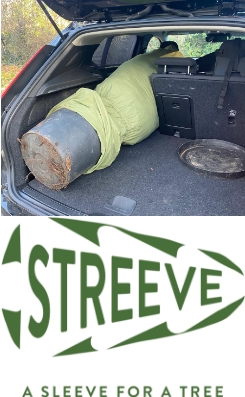 This does make transporting easier, but take a look at our “Streeve” – a sleeve for a tree. Available for sale.
