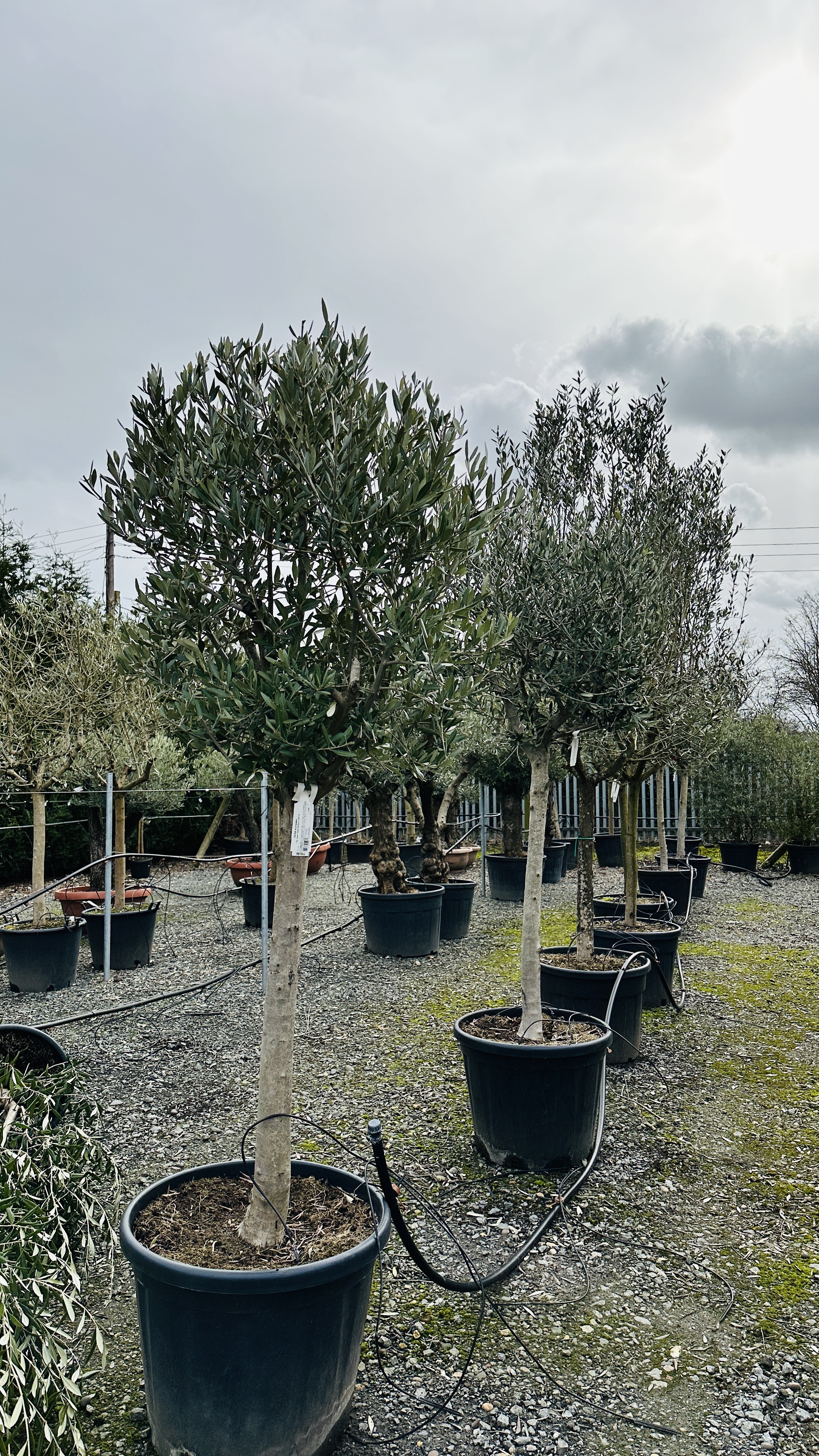 Olive trees in 30 litre pots.